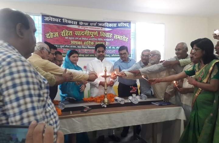 औरंगाबाद। जिला मुख्यालय स्थित महाराजगंज रोड के समीप दुर्गा गेस्ट हाउस के सभागार में जनेश्वर विकास केंद्र एवं जन विकास परिषद के संयुक्त तत्वाधान में दहेज रहित सादगीपूर्ण आदर्श विवाह को बढ़ावा देने के निमित्त आयोजित विचार गोष्ठी एवं सम्मान समारोह का आयोजन किया गया। कार्यक्रम का उद्घाटन औरंगाबाद के स्थानीय विधायक आनंद शंकर सिंह, सिन्हा कॉलेज के प्राचार्य डॉ वेद प्रकाश चतुर्वेदी, वाणिज्य कर आयुक्त नरेश कुमार, संयुक्त आयुक्त सुशील कुमार, पूर्व चेयरमैन संगीता सिंह, डॉ रामाधार सिंह, डॉ सुरेंद्र प्रसाद मिश्रा, प्रसिद्ध ज्योतिर्विद शिवनारायण सिंह, कविता विद्यार्थी, सिद्धेश्वर विद्यार्थी एवं अन्य ने दीप जलाकर किया। कार्यक्रम की अध्यक्षता डॉ. सुरेंद्र प्रसाद मिश्रा ने की।जबकि संचालन सुरेश विद्यार्थी ने किया। आगत अतिथियों का स्वागत पुष्पगुच्छ एवं माला देकर किया गया। स्वागत भाषण केंद्रीय अध्यक्ष रामजी सिंह ने दिया एवं स्वागत गान शिव वाटिका विद्यालय के छात्राओं ने गाई। दे दिया घर का दीया फिर भी कहते क्या दिया विषय पर विचार गोष्ठी पर प्रकाश डालते हुए विधायक ने कहा कि वर्तमान परिदृश्य में दहेज एक सामाजिक समस्या हैं। इसे रोकने के लिए हमें फिजूल खर्ची बंद करनी होगी। दिखावा एवं आडंबर का जो बोलबाला हैं, उसे रोकना होगा। हमारी संस्कृति पाश्चात्य सभ्यता की ओर जा रही हैं। उसे भी रोकना होगा तभी हम इस से निजात पा सकते हैं। डॉ वेद प्रकाश चतुर्वेदी, वाणिज्य कर आयुक्त नरेश कुमार पत्रकार प्रेमेंद्र मिश्रा, ई. सुबोध कुमार सिंह, कवि राम किशोर सिंह, मुखिया मनोज कुमार सिंह, अधिवक्ता संघ के अध्यक्ष संजय कुमार सिंह एवं अन्य वक्ताओं ने भी दहेज प्रथा रोकने में जन जागृति चलाने की बात कही।